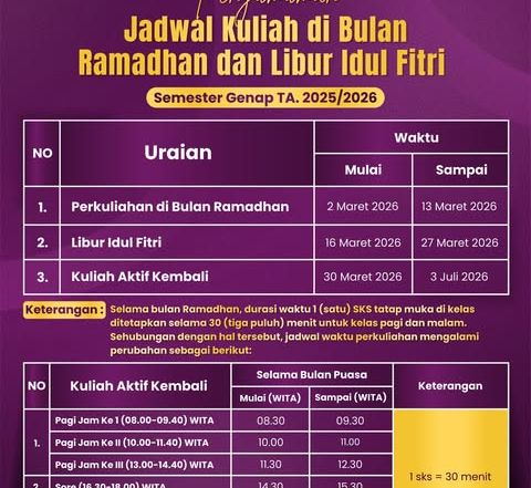 Jadwal Perkuliahan dan Libur Perkuliahan Semester Genap Tahun Akademik 2025/2026
