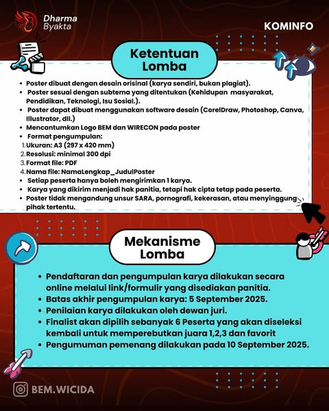 Jangan lewatkan kesempatan emas untuk menuangkan ide, inspirasi, dan gagasan cemerlangmu dalam sebuah poster yang penuh makna โจ
